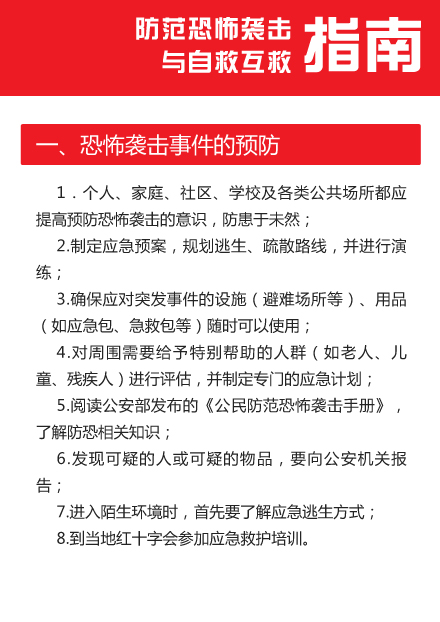 中国红十字会《防范恐怖袭击与自救互救指南》
