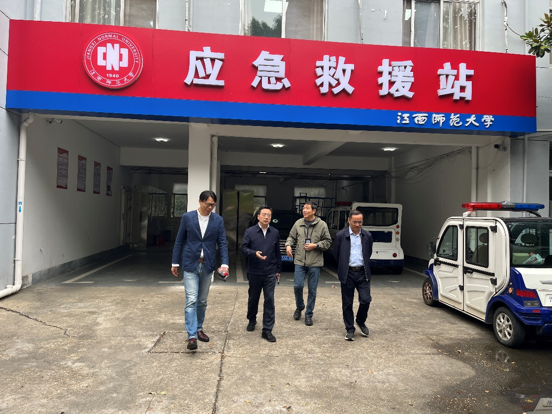 为深入贯彻落实校园安全管理工作要求,切实保障师生安全与校园稳定,2025年11月11日,江西省委教育工委委员、省教育厅副厅长程裕秋采取“四不两直”方式,深入我校开展安全工作检查。江西师范大学党委常委、副校长钟业喜陪同检查,学校保卫处负责人肖勇现场汇报相关工作。