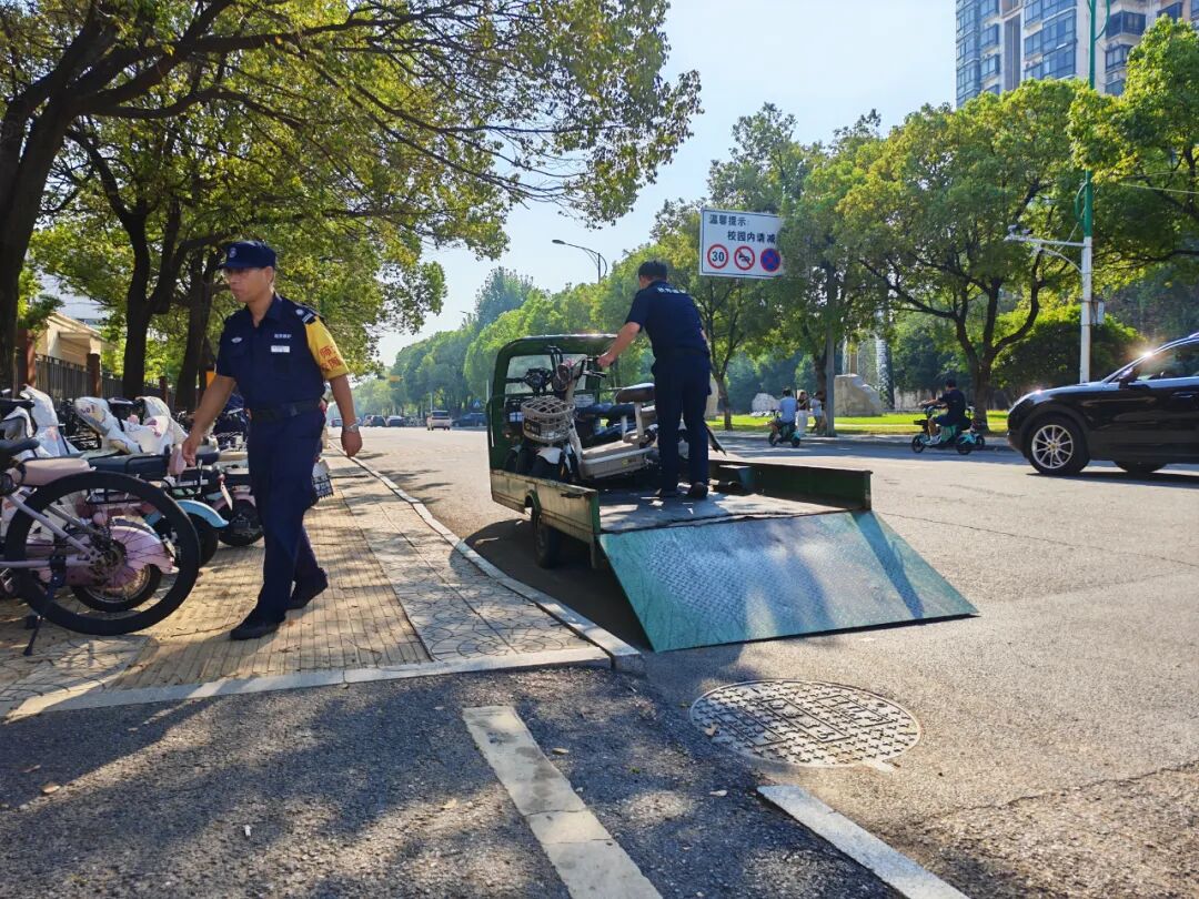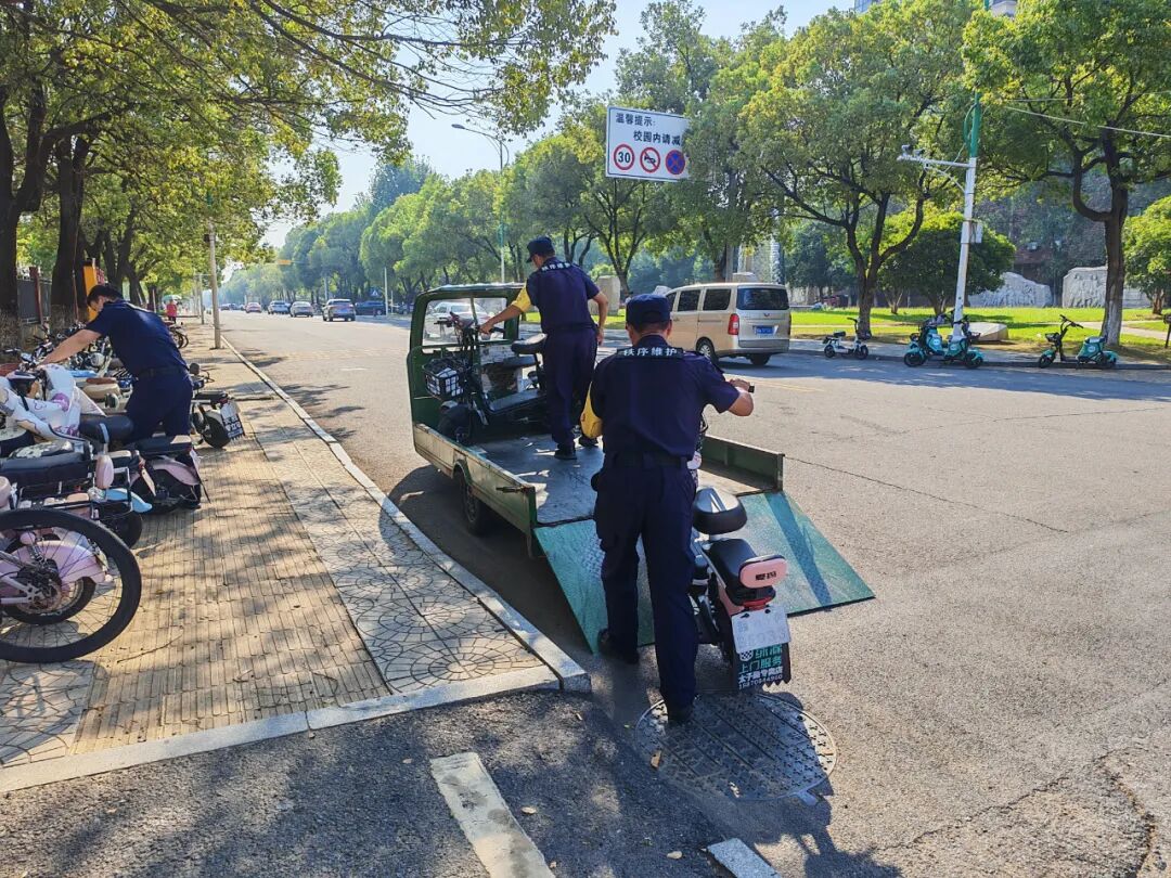 为进一步规范校园内电动自行车管理,防范化解安全事故风险,2025年9月,保卫处在瑶湖校区组织开展了无牌、套牌和无芯片等违规电动自行车专项清理整治行动。